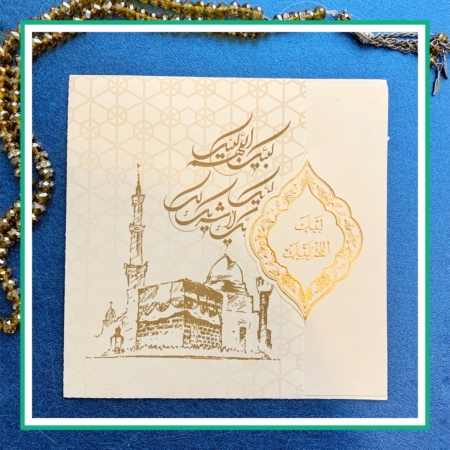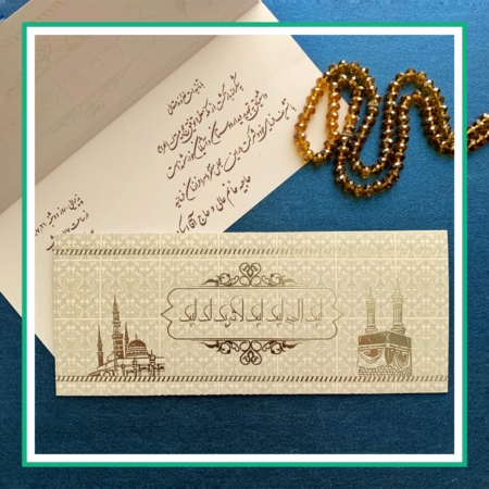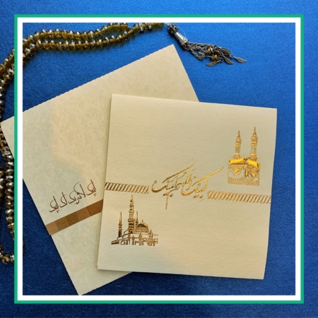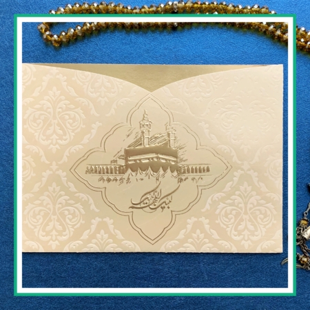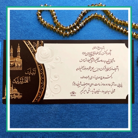 کارت دعوت مراسم حج با طراحی مذهبی، شکیل و متناسب با ارزش معنوی این سفر الهی. مناسب ولیمه و مهمانی بازگشت زائران خانه خدا. امکان خرید آنلاین با قیمت مناسب و ارسال سریع به سراسر ایران و کشورهای فارسی زبان.
