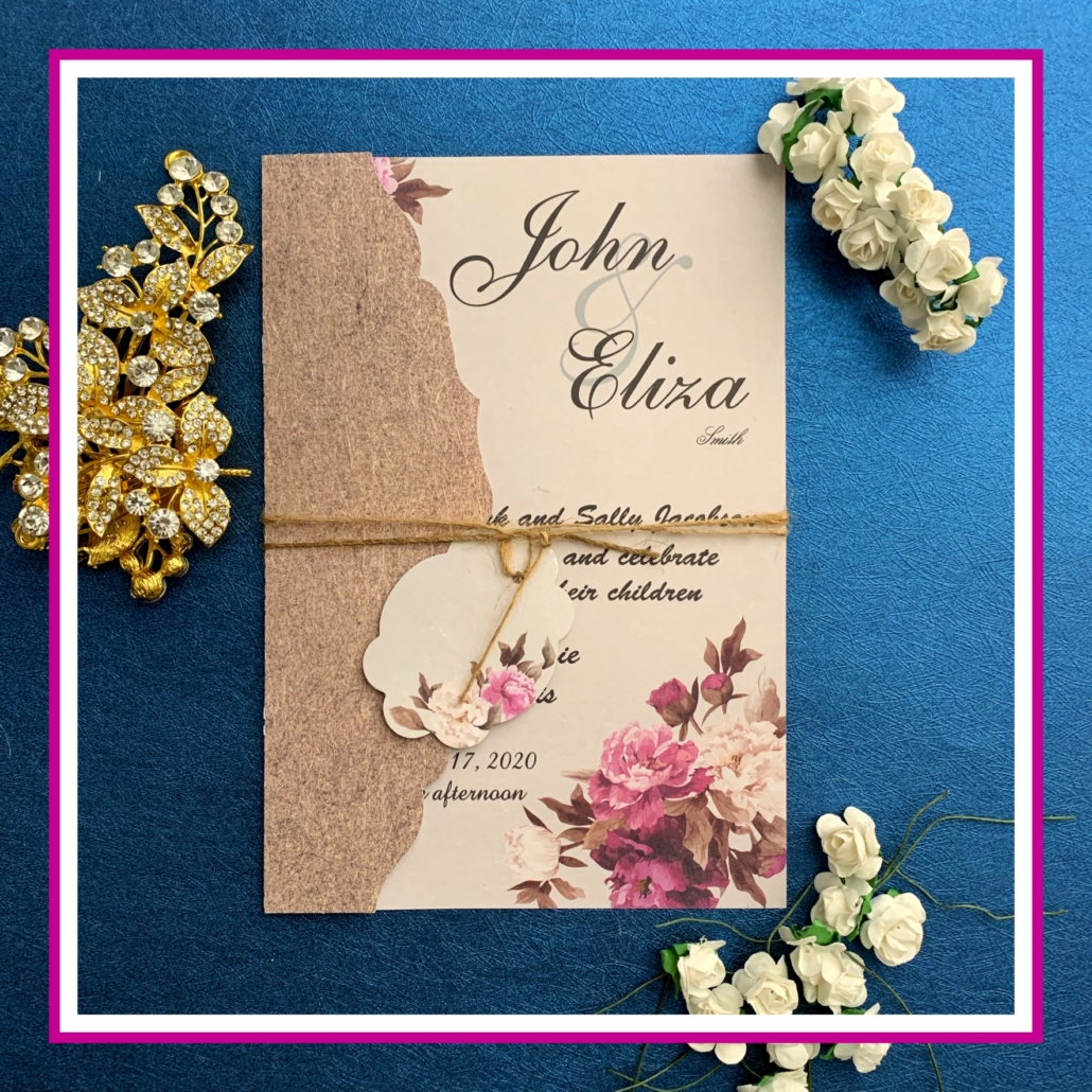 کارت عروسی کد 9470 از 3 قسمت کارت و پاکت، کنف و اتکت تشکیل شده است. مقوای استفاده شده برای این کارت از جنس مقوای کارتی نسبتا ضخیم می باشد. روی کارت طرحی کنف مانند توسط سیستم چاپ افست، چاپ شده است و داخل کارت هم با گل آبرنگی تزئین شده است. کنفی برای بسته شدن کارت روی هم در نظر گرفته شده است که با اتکتی از جنس خود کارت و طراحی مشابه با آن هماهنگ می شود.