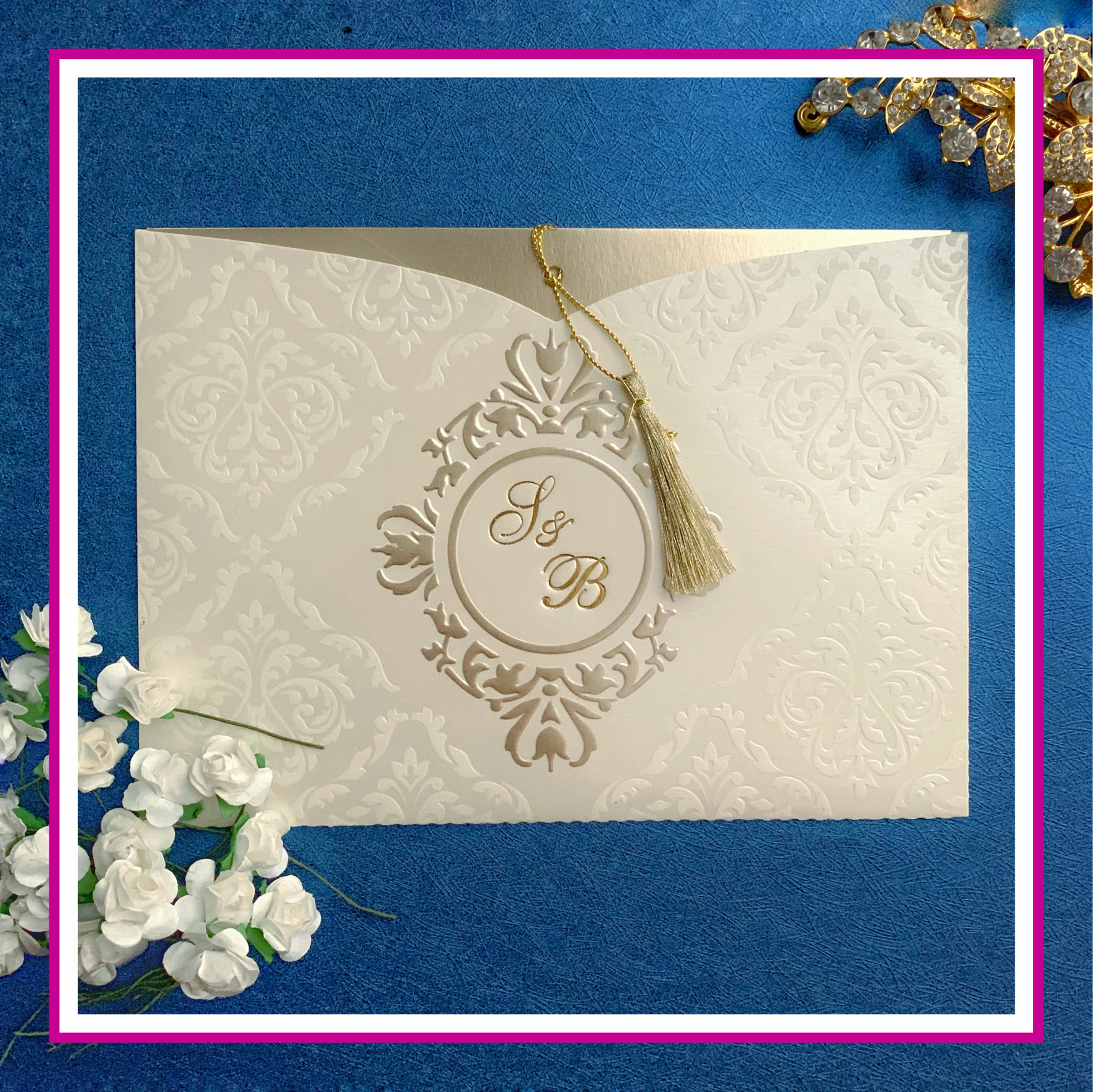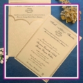 کارت عروسی کد 9488 از 2 قسمت کارت چاپی و پاکت تشکیل شده است. مقوای استفاده شده برای تولید این کارت از جنس مقوای متالایز ضخیم کرم است. در قسمت پاکت، با استفاده از سیستم چاپ تکسون نقشی از وکتورهای طرح گل روی پاکت با نوار صدفی برجسته شده است. در قسمت بالای پاکت با استفاده از قالب حاشیهای دالبر شکل ایجاد شده است که بدون برهم زدن سادگی کارت به زیبایی آن اضافه کند. همچنین برای تکمیل طرح ظاهری کارت با استفاده از نوار طلا، لب درب پاکت، برجسته شده است. در قسمت کارت چاپی با استفاده از نوار طلا حاشیه ای کاملا ساده به صورت دو خط تو در تو برجسته شده است. سادگی و زیبایی دو قسمت مورد توجه برای طراحی و تولید کارت عروسی کد 9488 است.