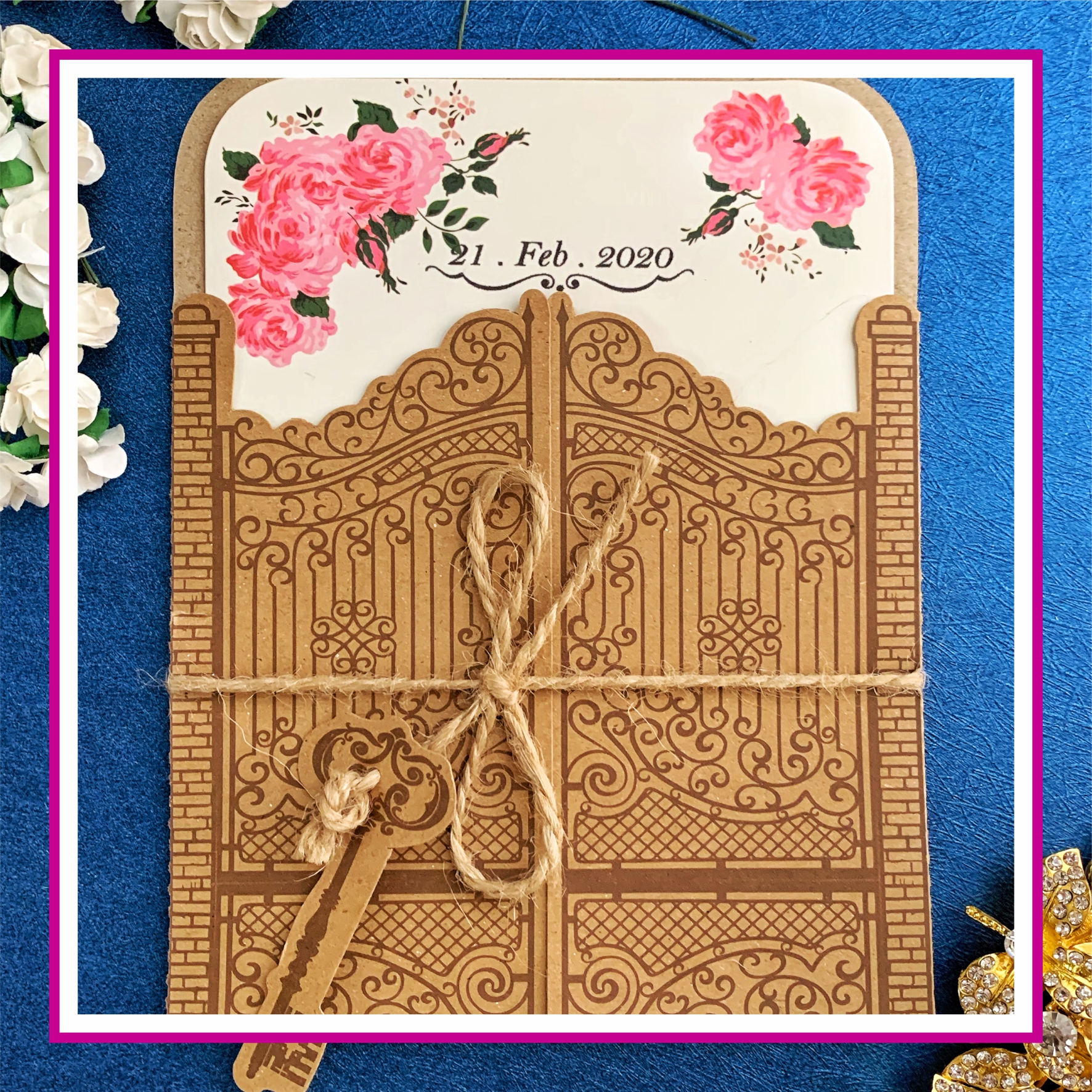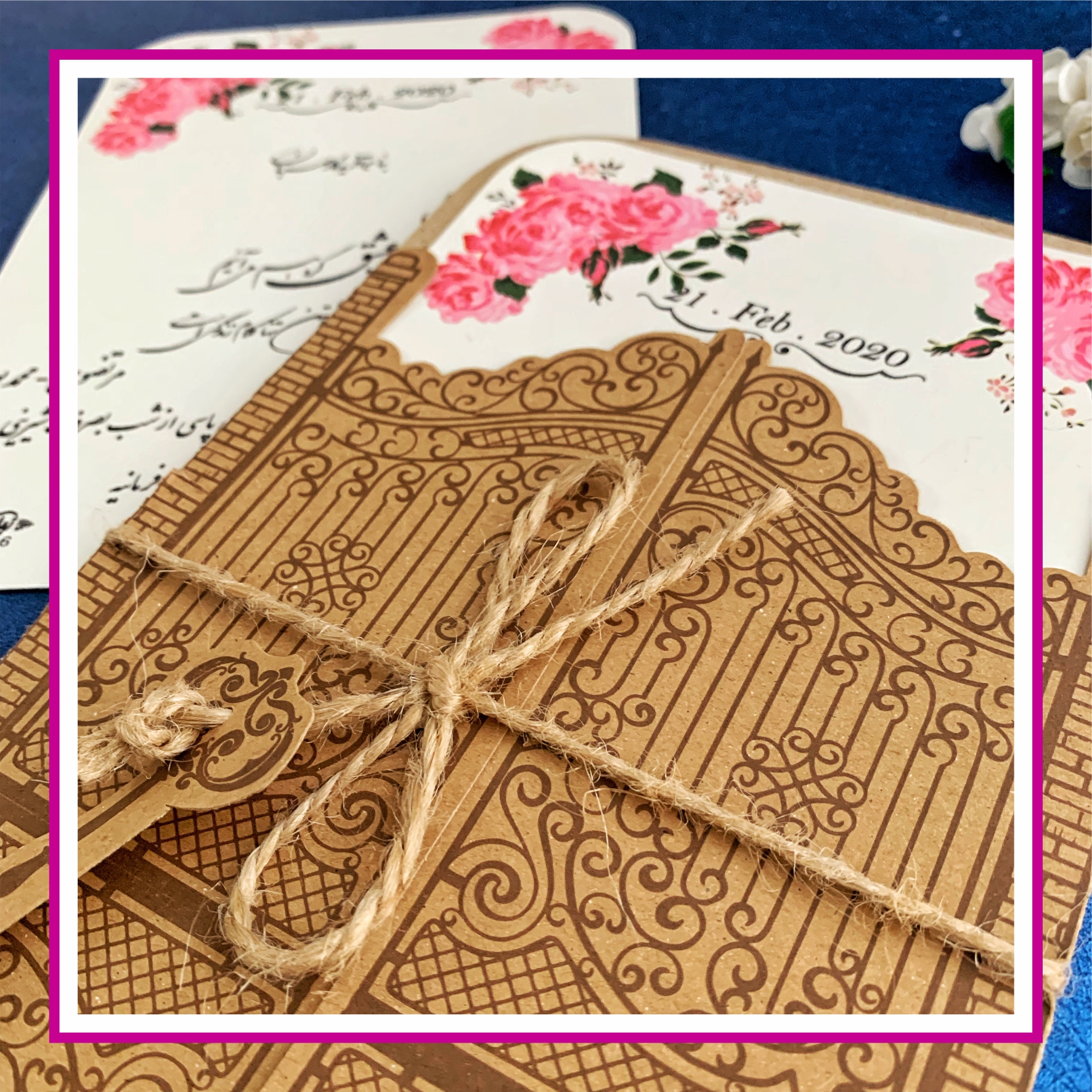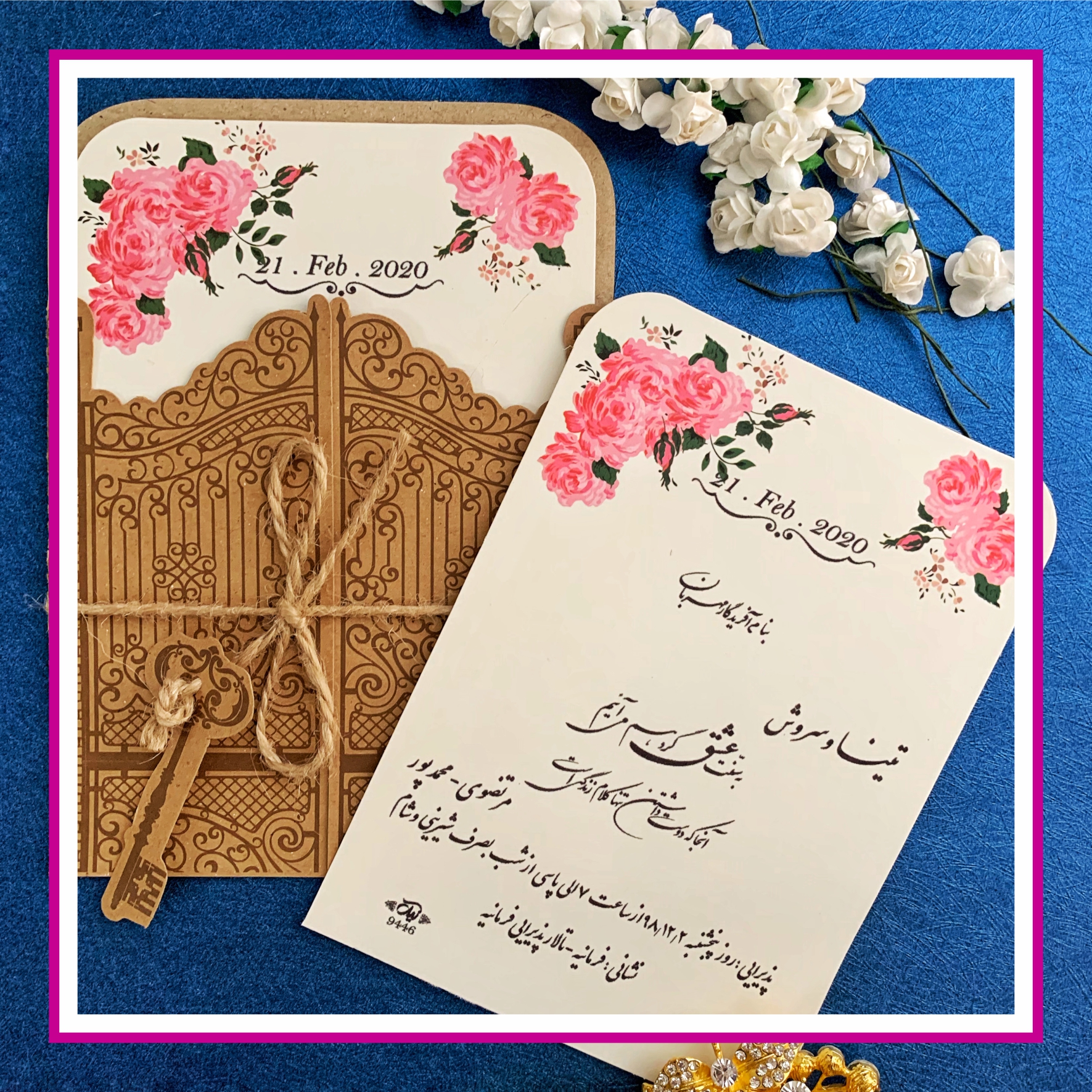 نماد درب و دروازه چند سالی است که یکی از مدل های ثابت کارت عروسی شده است. از کارتهای چوبی تا کارتهای مقوایی همواره مورد اسقبال بوده و هست.یکی از این مدل ها که توسط کارت نیک تولید شده است کارت عروسی کد 9446 است.تلفیق مدل دروازه و مقوای گراف زیبایی این کارت را دوچندان نموده است.