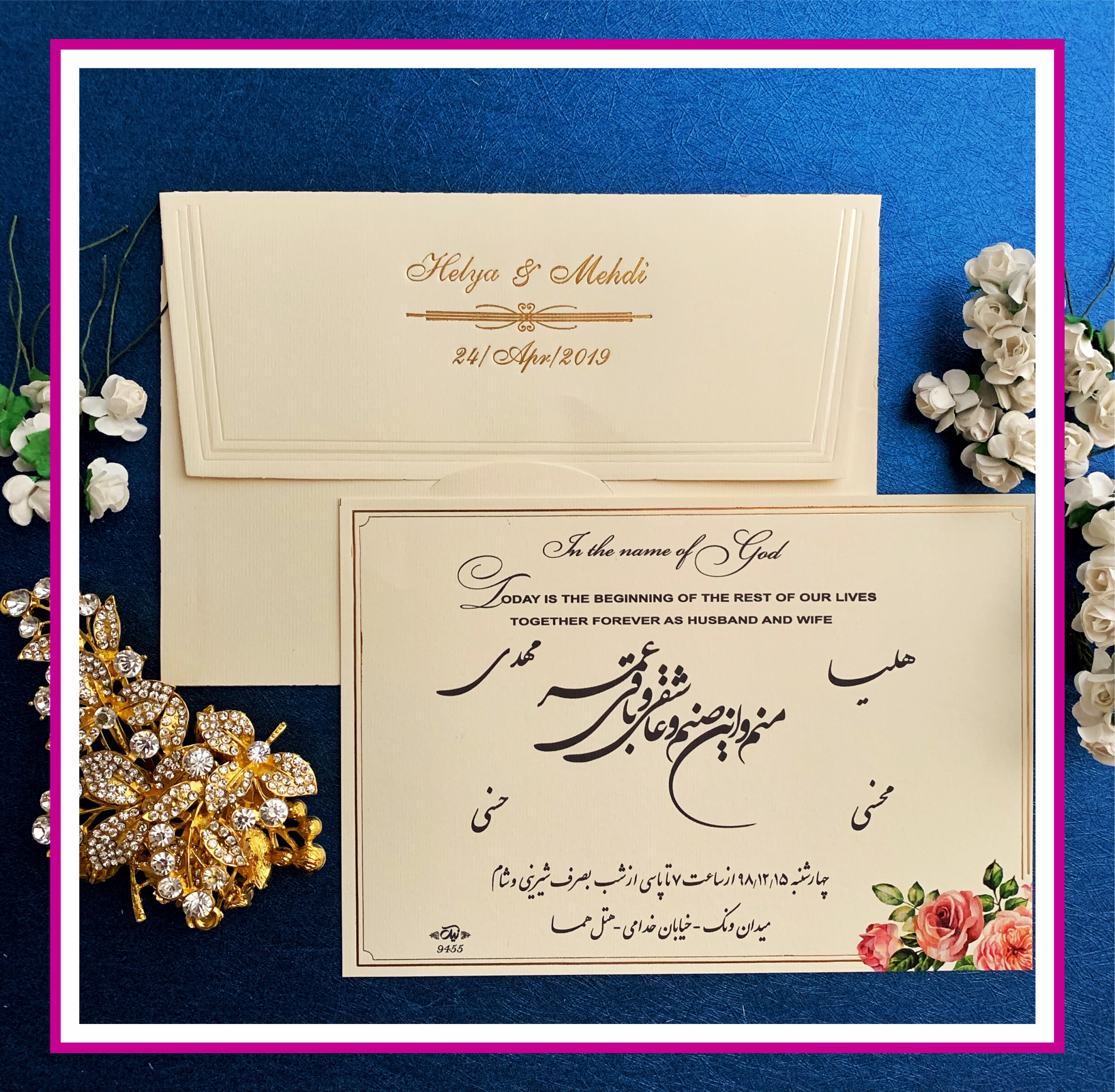 سادگی یکی از انواع مختلف مدل ها در هر زمینه ای زا مد می باشد که هیگاه از مد نمی افتد. این موضوع برای کارتهای عروسی نیز صادق است. کارتهای عروسی ساده همواره جزو پرفروش ترین مدل های کارت عروسی بوده و هست و احتمالا خواهد بود. کارت عروسی کد 9455 از جمله کارتهای ساده و در عین حال لوکس از مجموعه مدل های کارت نیک می باشد.